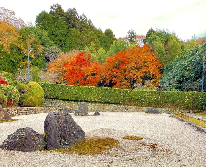 参拝料を払って境内に入ると、美しい石庭と紅葉のコントラストが素晴らしく、写真映えするスポットがたくさんありました。人が少ない分、まるで自分だけの庭園のように、しっとりとした時間を過ごせます。ただし、三脚を使った撮影は禁止されているのでご注意ください。「紅葉はしっとりたしなみたい」という方に、自信を持っておすすめします。