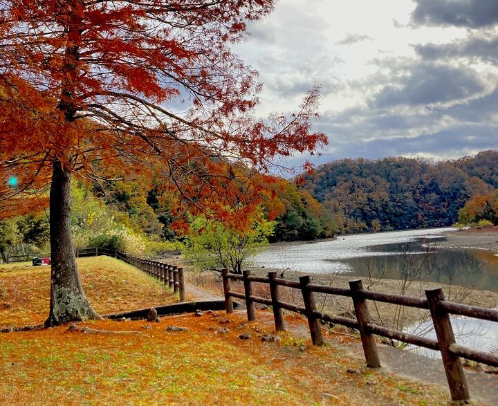 千丈寺湖の上流に位置する小野公園は、紅葉シーズンもBBQやデイキャンプで賑わう人気のスポットです。