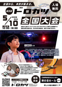 全国から子どもたちが集まり、プログラミング部門と操縦部門でドローン技術を競う全国大会が郷の音ホールで開催されます。熱い対決を間近で見学できる観覧無料のイベント。15:00〜はインドアドローンショーも観覧無料で楽しめます。体験会(プログラミング・操縦・謎解きゲーム)や軽音ライブ&楽器体験も充実。最新テクノロジーと子どもたちの情熱が交差する、見応えのある大会です。