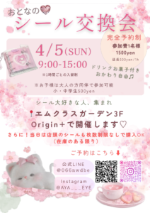 | 開催日時 | 4月4日(土) 11:00~19:00 |