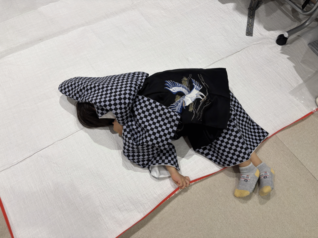 お着替えが飽きてきてグズリそうな我が子に、「次はこっちのかっこいい服で変身してみる?」と、ヒーローの変身をイメージさせる声掛けで、目に輝きが戻りました!流石、プロですね。