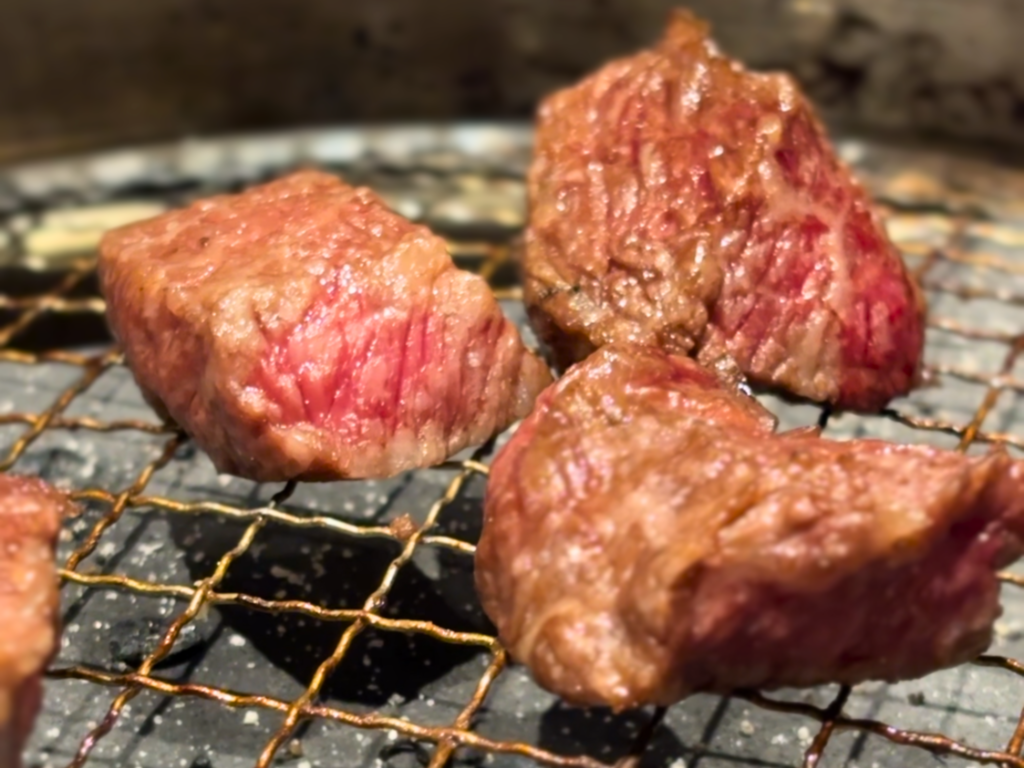 遠赤外線で肉の内部へと穏やかに熱を通すことで、細胞膜を壊さず、旨味成分を逃さないまま火が入ります。表面を焦がすのではなく、内側からじわっと「沸かす」。焼けたかどうかではなく、“沸いたかどうか” で食べる焼肉なんです。