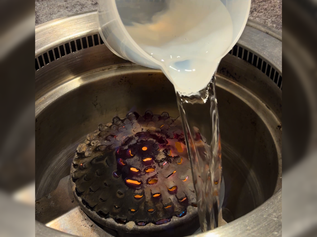 これ、子連れのご家庭にとってはかなりポイントが高くないですか?洋服に匂いがつきにくいし、目がしみない。わが家の子どもたちも、いつもなら途中で「目が痛い〜」とぐずるのに、この日はずっとお肉に夢中でした。